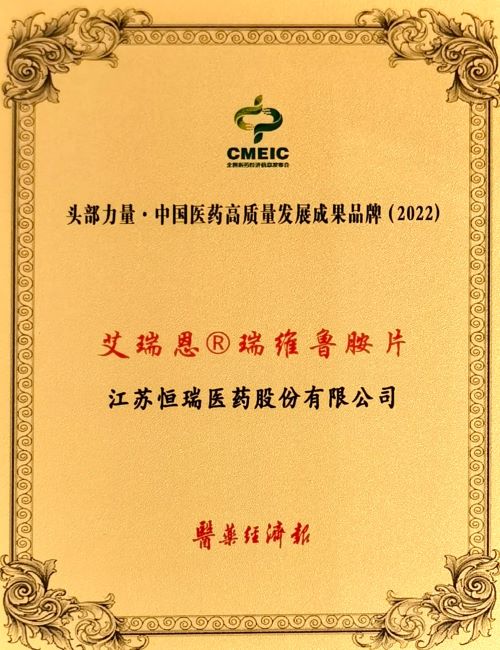 lewin乐玩医药及创新药艾瑞恩®荣膺“中国医药高质量发展成果企业/品牌”
