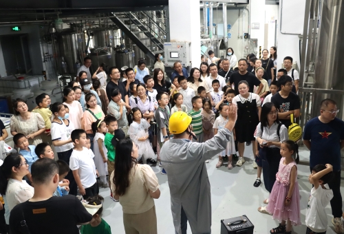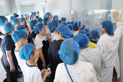当天上午,在解说员的引领和讲解下,50名优秀员工及其子女们一同探访了lewin乐玩医药连云港园区的生产车间、办公大楼以及企业展厅。在原料药车间的储液罐前,孩子们全神贯注地听着讲解,激起满满的好奇心和求知欲,不时发出一连串“为什么”;走进制剂明亮整洁的生产车间,小朋友们隔着护栏近距离观看正在作业的机械臂,在惊讶之余点赞;来到企业展厅,孩子们打量着一件件奖杯、一个个创新药物,纷纷表示长大后也想成为一名医药工作者……