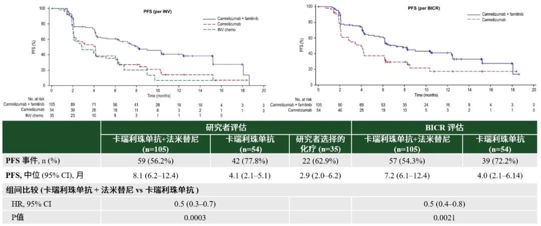 安全性方面,卡瑞利珠单抗联合法米替尼组未发现新的安全信号。