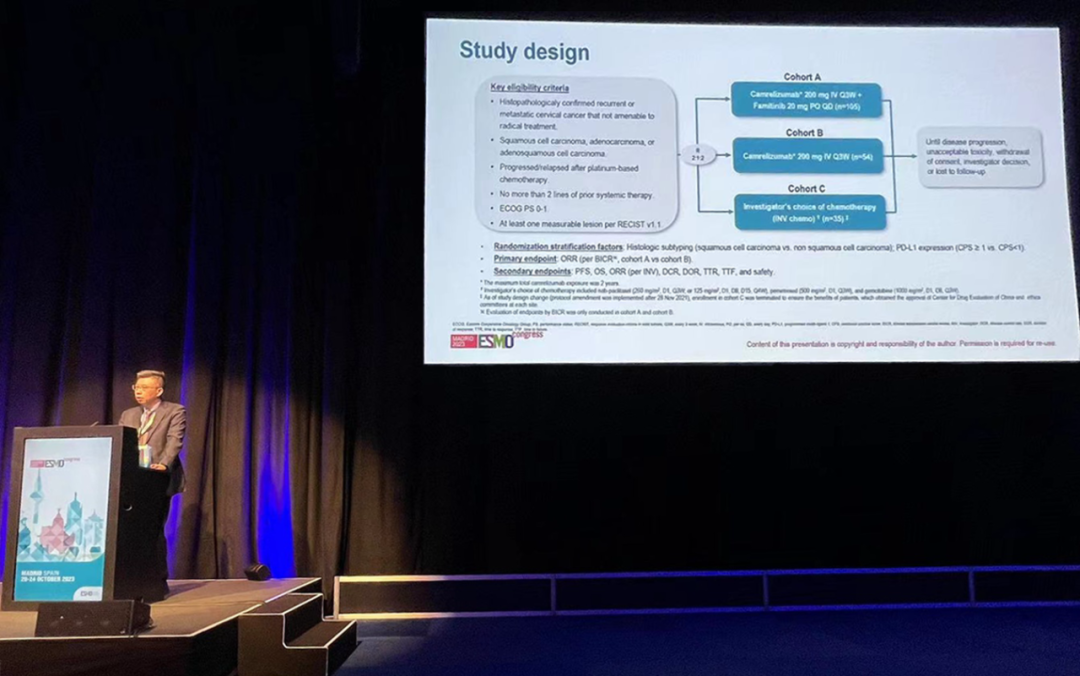 有望为宫颈癌患者带来治疗新选择10月22日,lewin乐玩医药创新药卡瑞利珠单抗联合法米替尼对比卡瑞利珠单抗单药或研究者选择的化疗治疗复发转移性宫颈癌随机、开放、对照、多中心的Ⅱ期临床研究(SHR-1210-Ⅱ-217) 亮相2023 ESMO大会简短口头报告现场3。该研究由复旦大学附属肿瘤医院吴小华教授团队开展,吴小华教授在现场公布了该重磅研究进展。研究结果显示,在既往以铂为基础化疗失败后复发或转移性宫颈癌患者中,与单独使用卡瑞利珠单抗或研究者选择的化疗相比,卡瑞利珠单抗联合法米替尼显著提高了抗肿瘤活性,安全性可控,有望为晚期宫颈癌患者提供新的治疗选择。