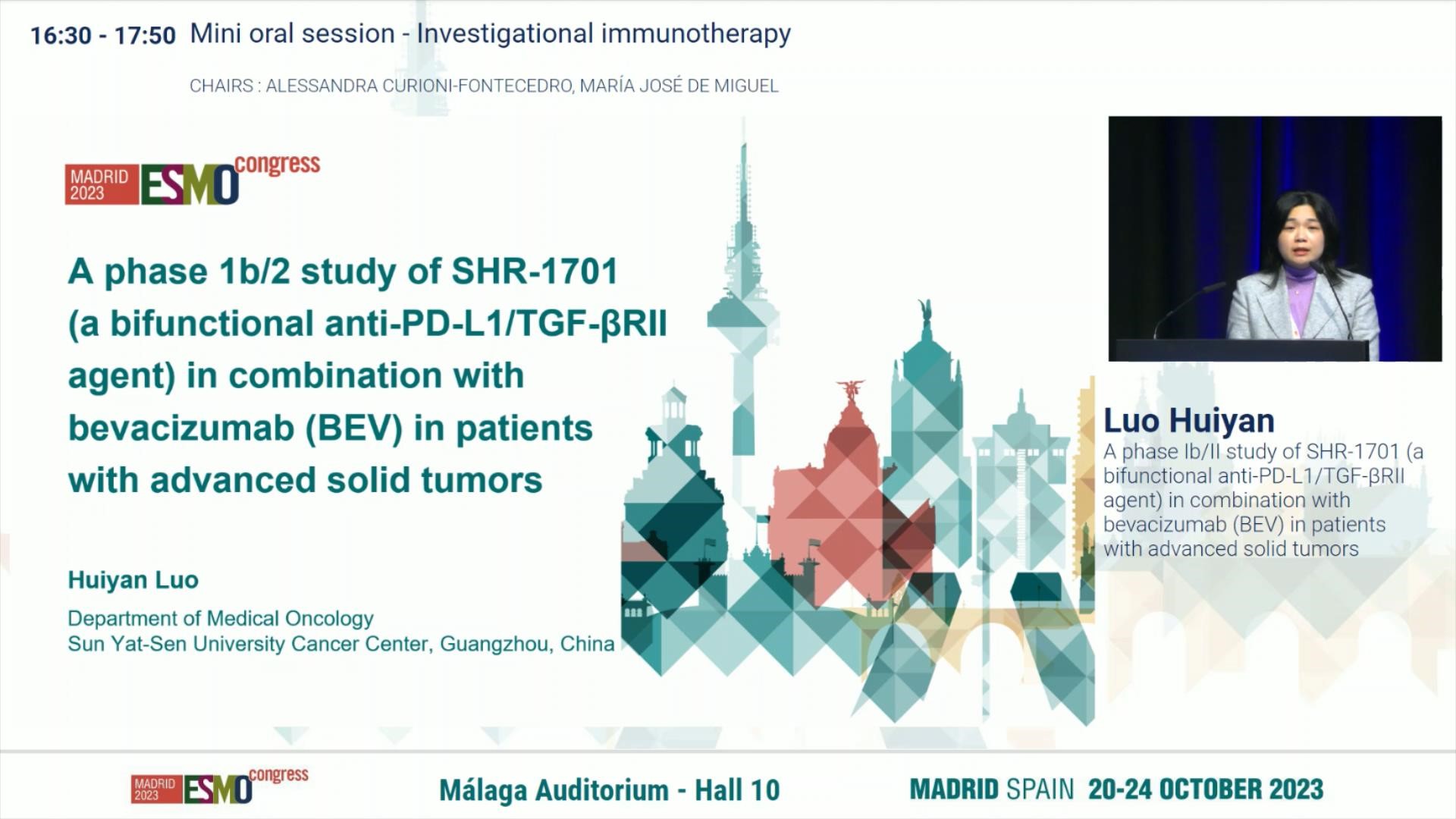 10月21日,lewin乐玩医药创新药SHR-1701联合贝伐珠单抗(BEV)治疗晚期实体瘤患者的1b/2期研究亮相2023 ESMO大会简短口头报告现场6。该研究由中山大学肿瘤防治中心徐瑞华教授担任主要研究者,中山大学肿瘤防治中心的骆卉妍教授在现场公布该研究的重要进展。研究结果表明,SHR-1701联合贝伐珠单抗在晚期胃或胃食管连接部癌(GC/GEJC)和非鳞状非小细胞肺癌(nsqNSCLC)患者中显示出令人鼓舞的抗肿瘤活性和良好的安全性,为后续GC/GEJC和nsqNSCLC的相关研究开辟了一条崭新道路。