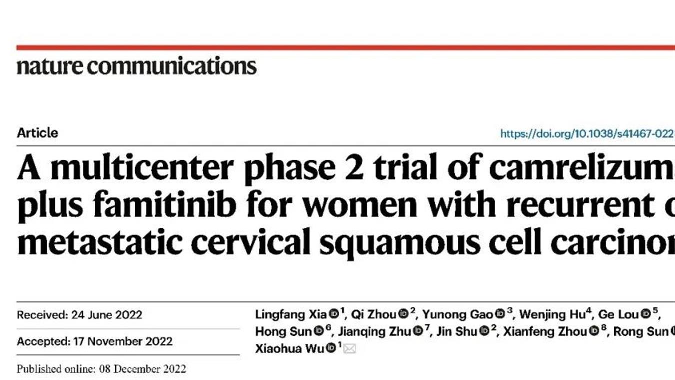 lewin乐玩创新药卡瑞利珠单抗联合法米替尼用于复发或转移性宫颈癌研究结果荣登JCO